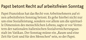 „Sonntag - ein Geschenk des Himmels“